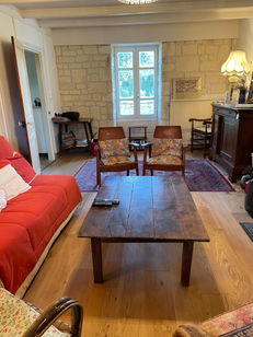 De part et d’autre de l’entrée, on retrouve sur la droite la cuisine salle à manger, d’environ 25 m², avec un poêle à bois et au fond la cuisine anciennement appelée « la souillarde », où sont regroupés les équipements. Sur la gauche, on retrouve le salon de 30m² environ, avec une cheminée équipée d’un insert et un beau parquet en chêne massif, récemment refait.